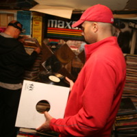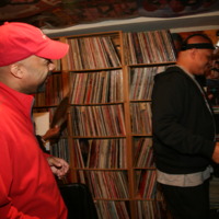 During the first day of the Michael Webster collection acquisition, Webster and DJ are pictured searching through Websters collection of albums.