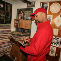Michael Webster holding album from his collection during the first day of acquisition.